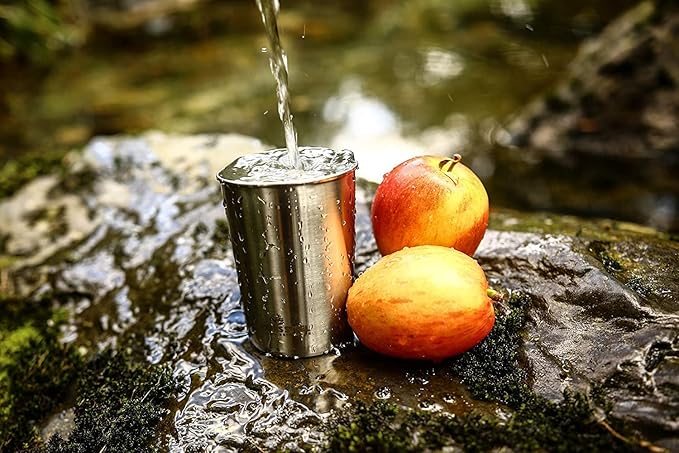 - STACKABLE, GRAB-AND-GO DESIGN – Space-saving cups that neatly nest together. Perfect for home, picnics, RVs, camping, or on-the-go. Use as reusable tin cups or compact 10oz tumblers for water, juice, or smoothies.