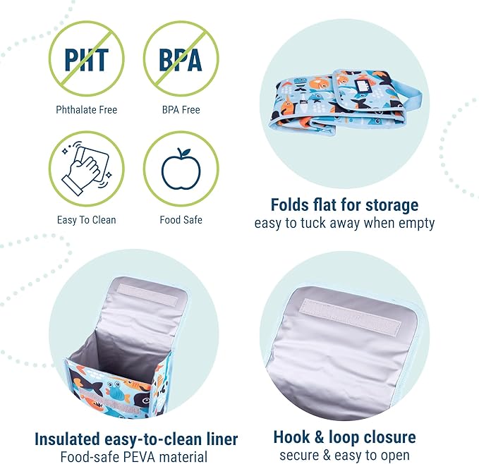 - Travel-Friendly Design – Make travel easy with our kids insulated lunch bag that features a hook and loop closure with a top carrying handle and velcro closure. Bento lunch bag fits your food container and collapses flat.
