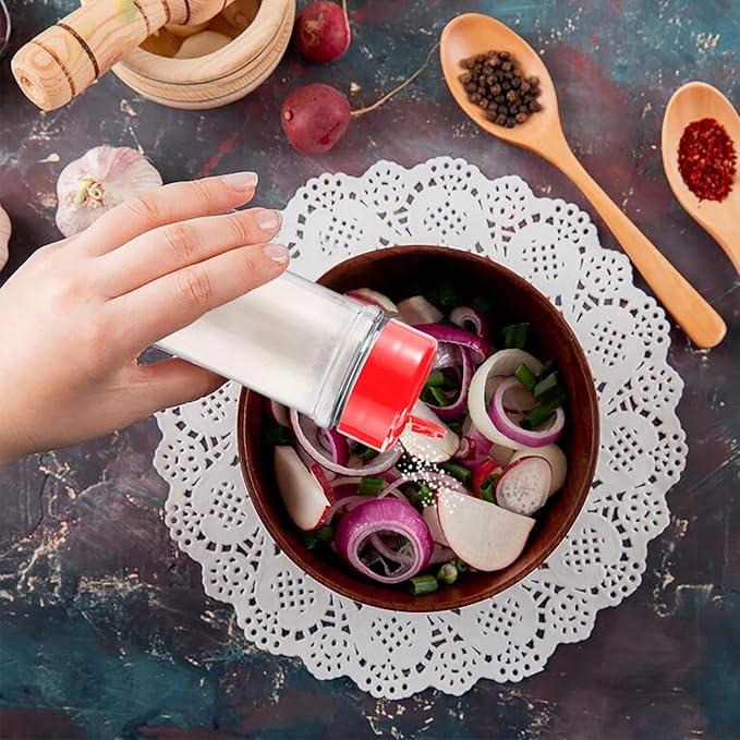 - Value Set: The package includes 12 pieces of 5.5oz plastic spice jars with red screw lids to meet your daily needs.