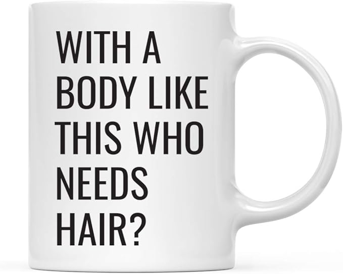 - Humorous Message with Bold Text: Printed with the phrase with a body like this who needs hair? coffee mug in a bold font; this with a body like this, who needs hair mug is a humorous gift; a fun with a body like this who needs hair mug suitable for birthdays, holidays, or casual appreciation; practical for funny mugs for adults given with humor; reliable for practical gifting in with a body like this who needs hair coffee mug themed options