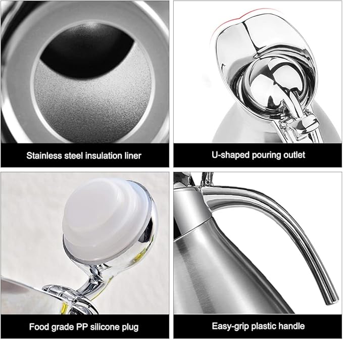 - The insulated liner of the kettle is made of high quality durable stainless steel. 68 ounces (2 liters) large capacity can be satisfied the demands of everyday use. It will allow you to enjoy the fragrant coffee at any time.