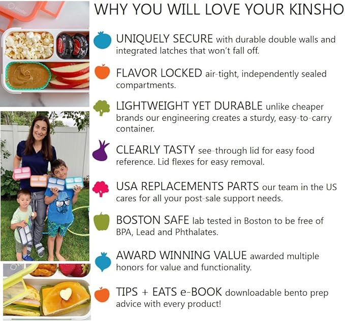 - WHAT YOU GET: *2 authentic Kinsho bento boxes. *2 custom fit cooler bags. *2 deluxe fabric-covered cold packs. *2 custom fit spoon & fork sets. *Kinsho Tips + Eats eBook with 60+ Bento tips + recipes from Kinsho’s founder (a mom & award-winning mindful cooking author). *Industry leading guarantee. *Customer support from our Boston-based team.