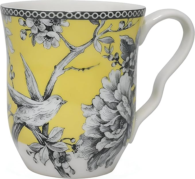 - Charming Spring Design: Features a romantic scene of birds singing among flowering branches, set in an intricate woodland tableau, all rendered in a hand-applied decal on fine porcelain.