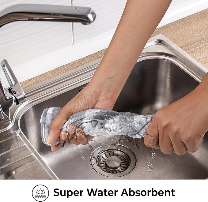 Urban Villa Kitchen Towels Set of 6 Buffalo Checks Grey/White Kitchen Towels 20X30 Inches 100% Cotton Highly Absorbent Kitchen Towels Premium Quality Ultra Soft Mitered Corners KitchenTowels