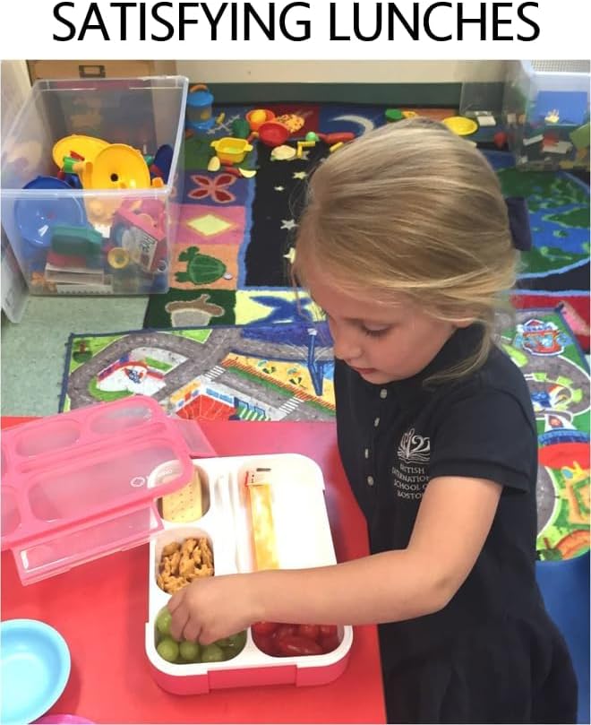 Bento Box with Lunch Bag and Ice Pack Set | Snack Containers Boxes for Kids Girls Adults | 6 Compartments Divided Portion Container Boxes Insulated Bags for School Daycare Lunches, BPA Free, Pink