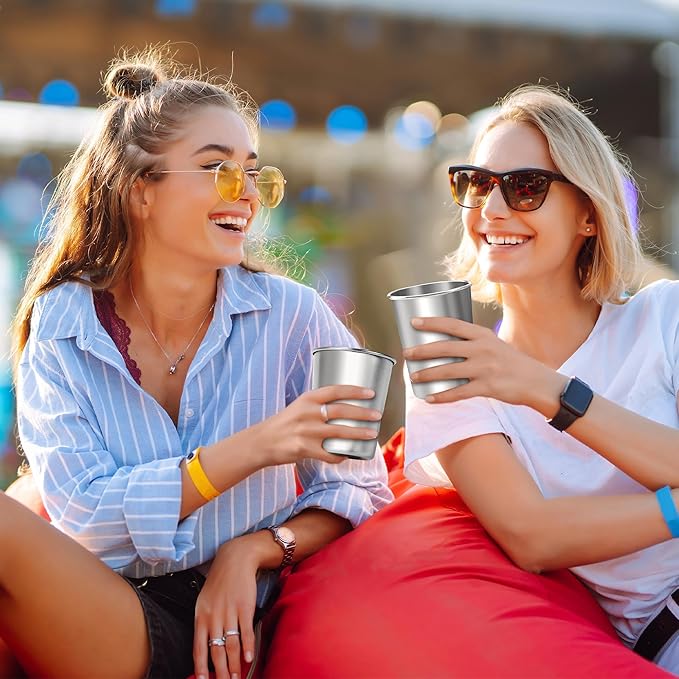 Resinta 10 Pieces 8 Ounce Stainless Steel Cups Metal Pint Cups Shatterproof Drinking Glasses for Kids or Adults (8 oz)