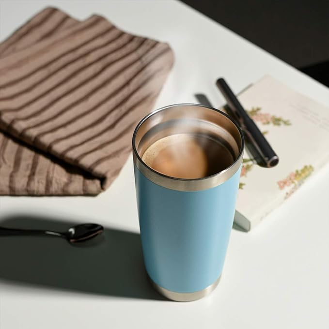 DOMICARE 20oz Stainless Steel Tumbler Bulk with Lid, Double Wall Vacuum Insulated Travel Mug, Powder Coated Coffee Cup, Light Blue, 1 Pack