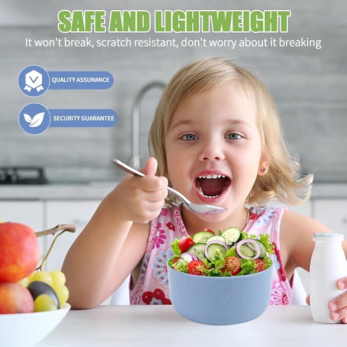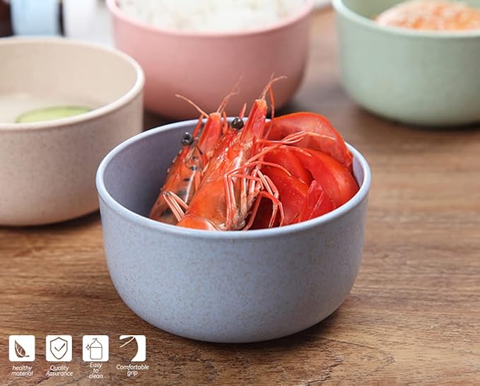 - 【User-Design】 The wheat starw bowls are designed with space-saving style and smooth round edges, giving you good touch and prevent deformation. No plastics and harmful chemical materials. It’s a good alternative to plastic cereal bowls. The space-saving, stackable design of the bowl set makes them a convenient addition to your cabinet. They not only add a decorative touch to your kitchen but also contribute to a cleaner, more organized look