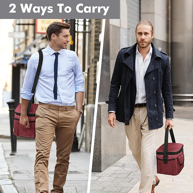 - Convenient Design - This lunch box for women and men features an adjustable shoulder strap for easy carrying.The double zipper ensures quick access, while 2 front pocketand 2 side mesh pockets store personal items. Stylish and functional for work, gym, or as a school lunch bag.