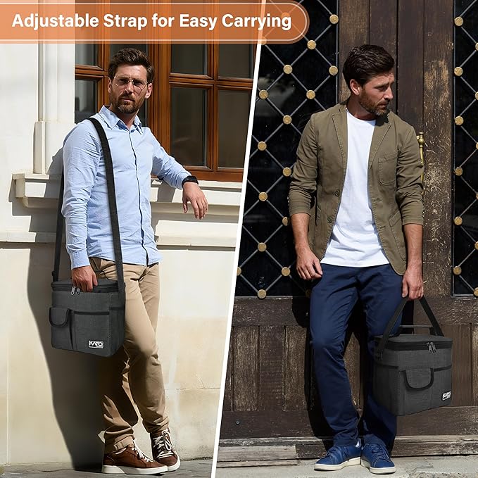 - Convenient Design - This lunch box for women and men features an adjustable shoulder strap for easy carrying.The double zipper ensures quick access, while 2 front pocketand 2 side mesh pockets store personal items. Stylish and functional for work, gym, or as a school lunch bag.