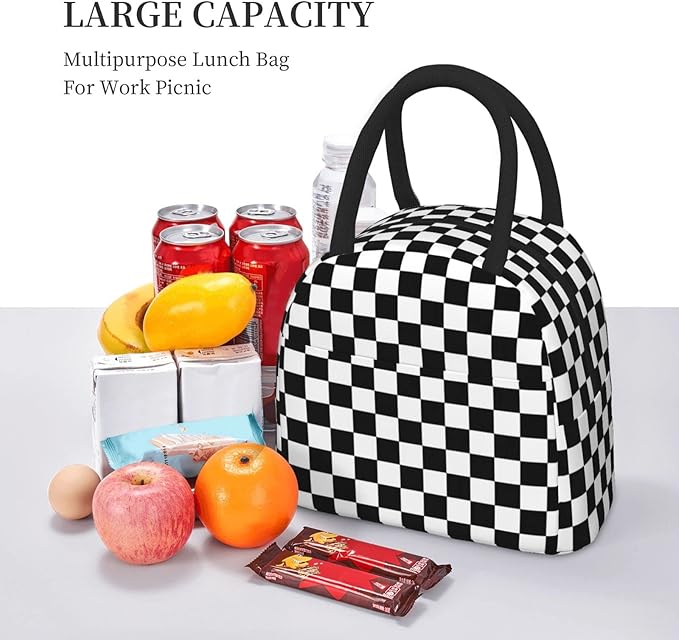 Aeoiba Black White Checkerboard Insulated Lunch Box Tote Bag Handbag lunchbox Food Container Gourmet Tote Cooler warm Pouch For School work Office