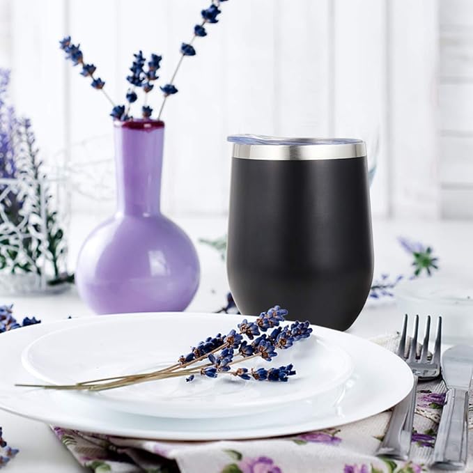 - [Advanced Insulation Technology:]Double wall vacuum insulated prefection in a stemless wine tumbler made from lifelong Stainless Steel! Set off on your refreshing picnic, hiking or camping adventures with your water, wine, or cocktail icy-cold for 9 hours or your coffee and tea scalding-hot for over 3 hours!