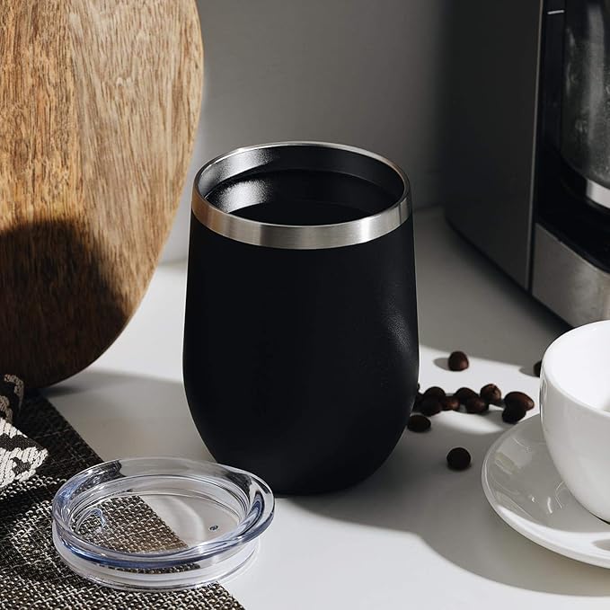 MEWAY 12oz/12 Pack Wine Tumbler Glasses with Lid -Double Wall Vacuum Stainless Steel Travel Tumbler Mug,Stemless Insulated Wine Cup for,Coffee,Cocktails,Gifts (Black,Set of 12)