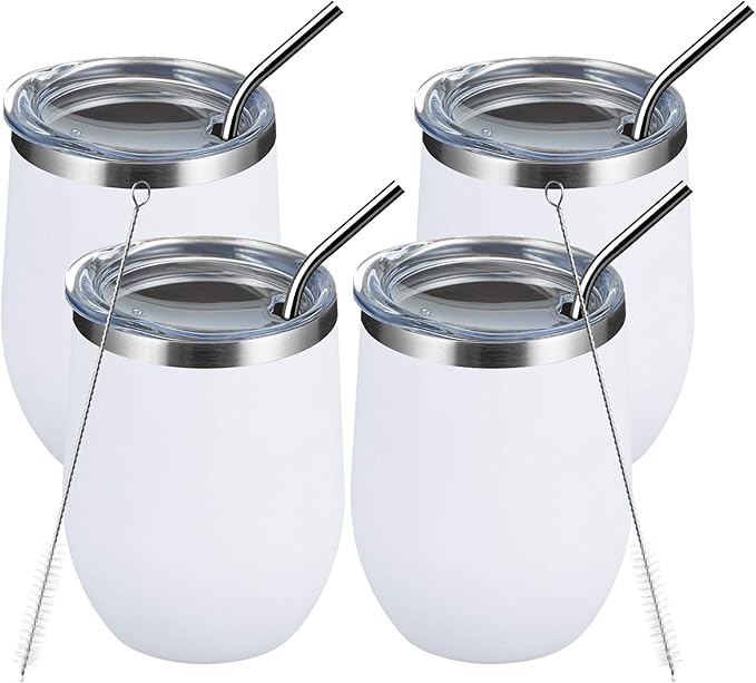 - [Package included]4*12oz wine tumbler,4*splash proof sliding lid with hole, 4*unbreakable steel straw, 2*straw brush,and 1*beautiful package box.If you are short of accessories, please contact us in time.