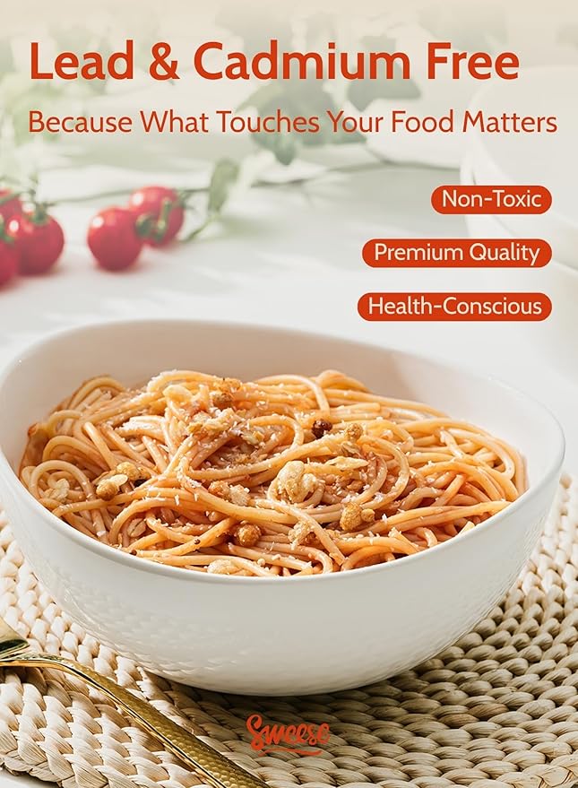 Sweese 42oz Porcelain Serving Bowls - Set of 4, 8-Inch White Bowls for Salad, Soup, Pasta & More - Microwave, Dishwasher & Oven Safe