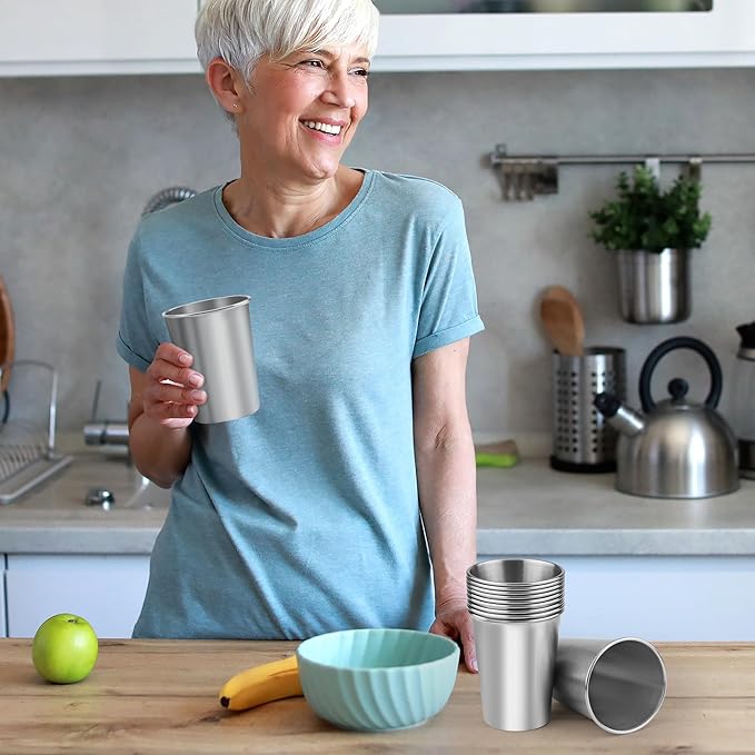 Ruisita 10 Pieces 12 Ounce Stainless Steel Cups Metal Pint Cups Shatterproof Drinking Glasses for Kids or Adults (12 oz/350 ml)