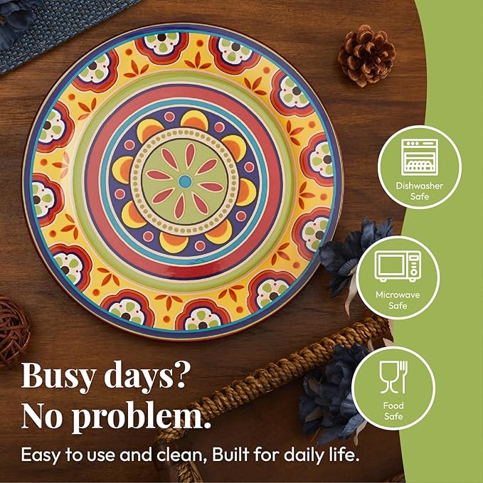 - 【Microwave & Dishwasher Safe】These ceramic dinner plates are microwave and dishwasher safe, offering convenience for heating and cleaning, so you can spend more time enjoying your food and less time cleaning. For safety, we recommend using oven mitts when handling hot plates and wipe off moisture before microwaving.