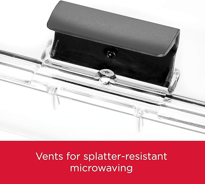- Microwave-friendly: Built-in vents under the latches for splatter-resistant reheating with lid on