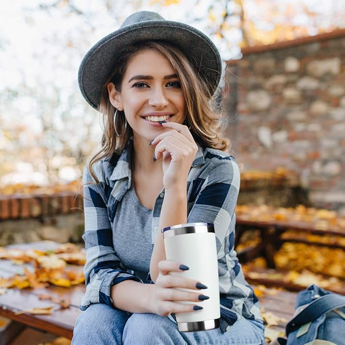 20oz Tumbler Bulk Stainless Steel Vacuum Insulated Tumblers with Lid Double Wall Travel Mug Durable Powder Coated Coffee Cup, Suitable for Ice Drinks and Hot Beverage (White 1pack)
