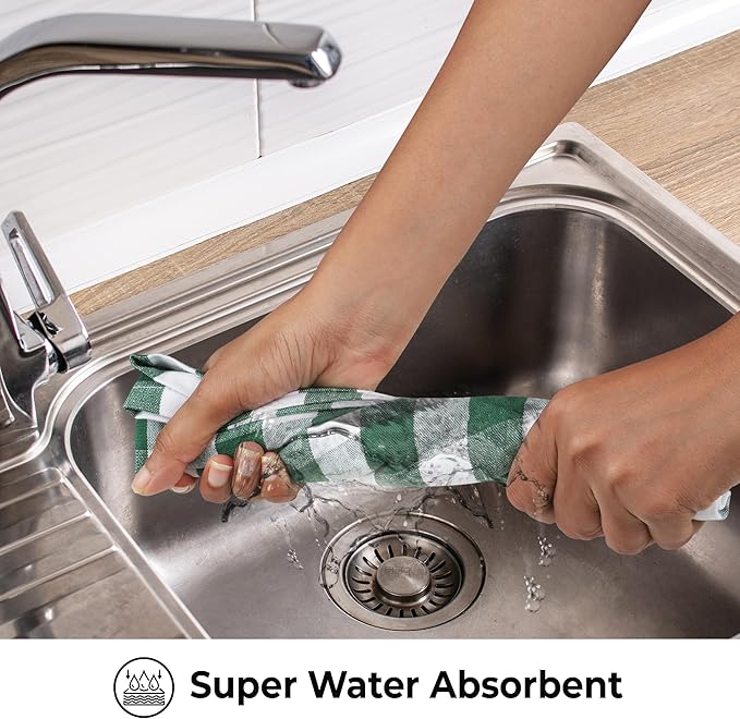 Urban Villa Kitchen Towels Set of 6 Buffalo Checks Hunter/White Kitchen Towels 20X30 Inches 100% Cotton Highly Absorbent Kitchen Towels Premium Quality Ultra Soft Mitered Corners Kitchen Towels