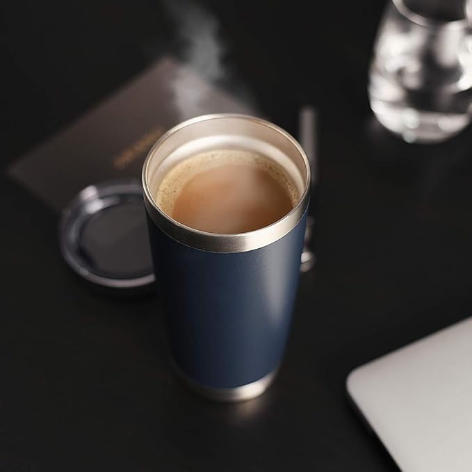 DOMICARE 20oz Stainless Steel Tumbler Bulk with Lid, Double Wall Vacuum Insulated Travel Mug, Powder Coated Coffee Cup (Powder Navy, 8)