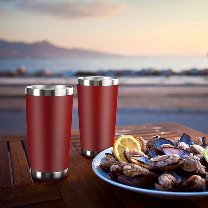 20oz Tumbler Bulk Stainless Steel Vacuum Insulated Tumblers with Lid Double Wall Travel Mug, Durable Powder Coated Coffee Cup, Suitable for Ice Drinks and Hot Beverage (Red 12pack)