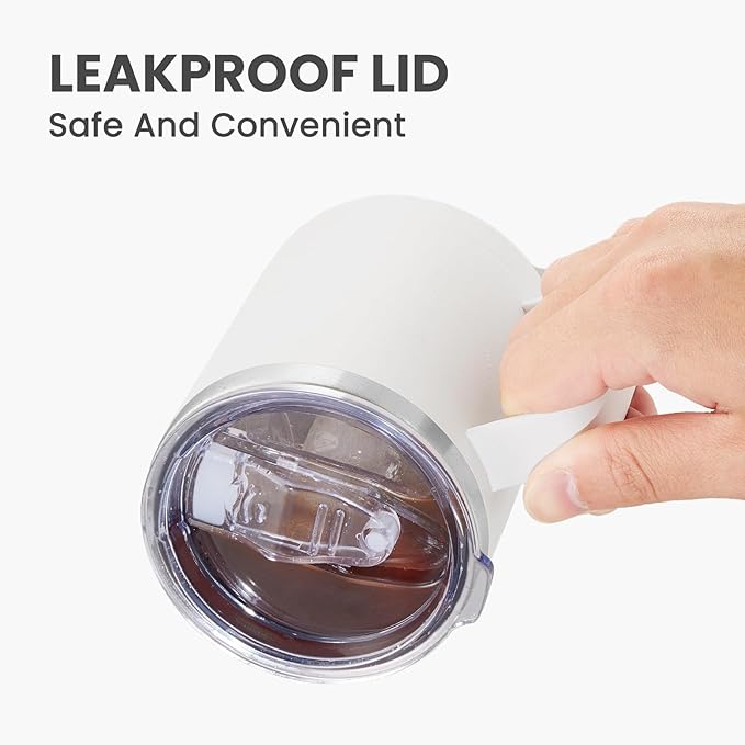 MEWAY 12oz Coffee Mug With Handle 4 Pack Bulk,Stainless Steel Insulated Travel Tumblers With Sliding Lid,Double Wall Vacuum Camping Cup for Hot & Cold Drinks Tea (White,Set of 4)