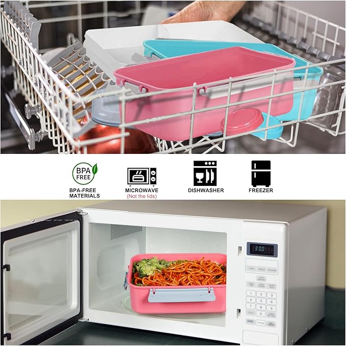 - Healthy and Safe Material: The bento lunch box is made of food-grade PP, non-toxic, Phthalate free, BPA free, great lunch boxes containers for adult and kids with large capacity 47oz, ideal meal prep containers for outdoor, camping, work, office and school use.