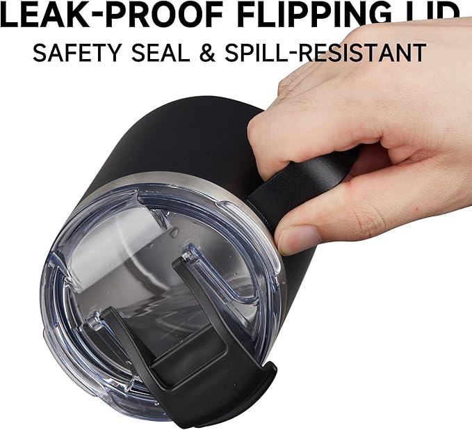 - Coffee Mug Cup with Lid: The transparent plastic lid with a rubber gasket, which is well tightness, it is easily swiped to open while keeping away from splashing