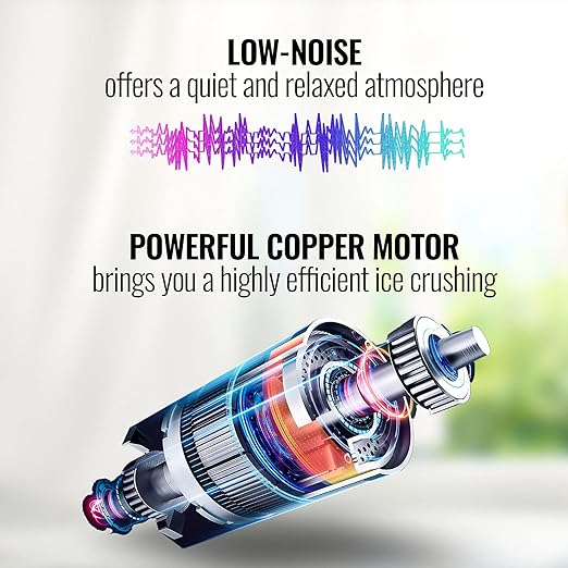- Dual Blades with More Efficient: The heavy-duty stainless steel dual blades provide double efficiency comparing to the single blade machines. Also, an extra pair of blades and ice scoop is available for free. The high-power 300W copper motor ensures a high rotating speed of 1450 r/min and incredible crushing capacity of about 661lbs per hour and provides a large amount of ice for your daily and business use.