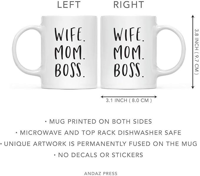 Andaz Press Mother's Day 11oz. Ceramic Coffee Tea Mug Gift for Mom, Wife. Mom. Boss, 1-Pack