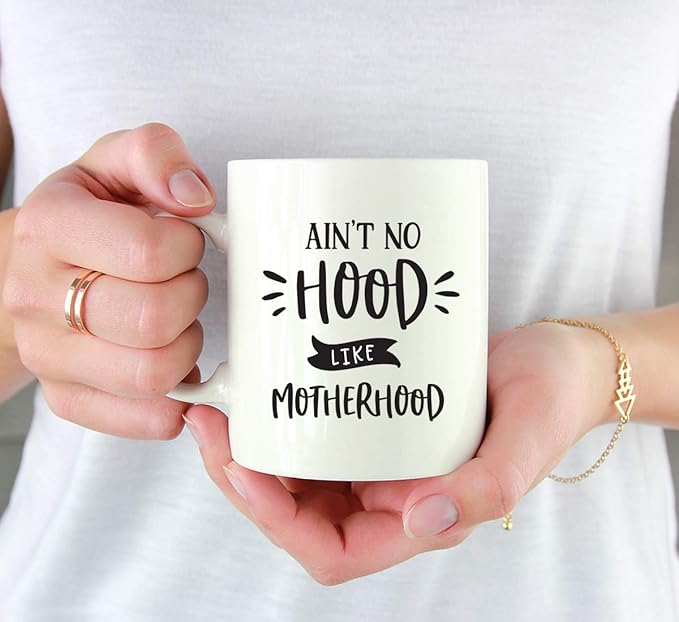 Andaz Press Mother's Day 11oz. Ceramic Coffee Tea Mug Gift for Mom, Ain't No Hood Like Motherhood, 1-Pack, Birthday Christmas Gift Ideas