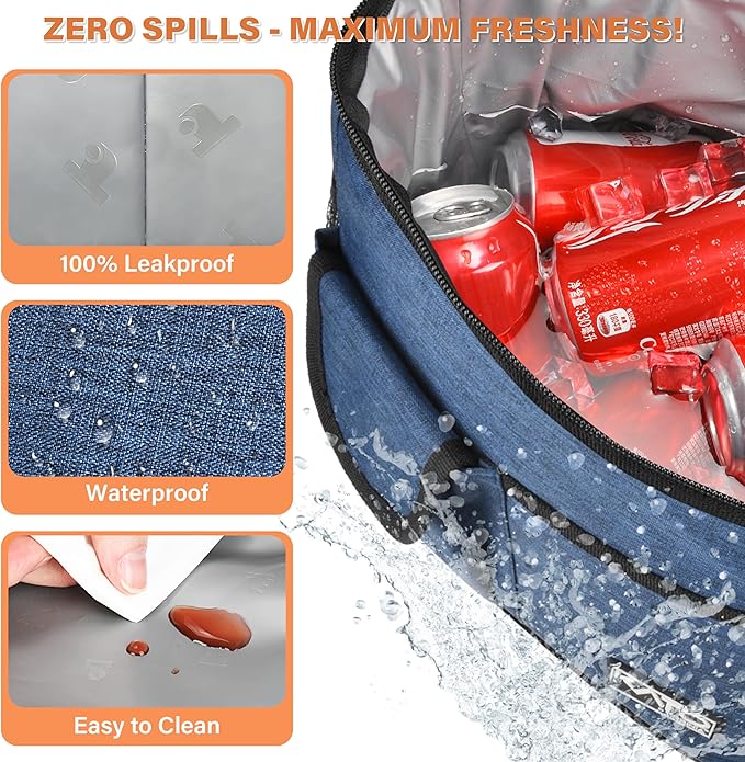 - Large Capacity - With dimensions of 10 x 8.5 x 9.3 inches (Lx W x H), this lunch box provides ample space, holding up to 15 cans of soda (330 ml) or all essentials for a full day out. Great for office, picnic, hiking, beach, or trips—whether as an adult lunch bag or lunch box for kids.