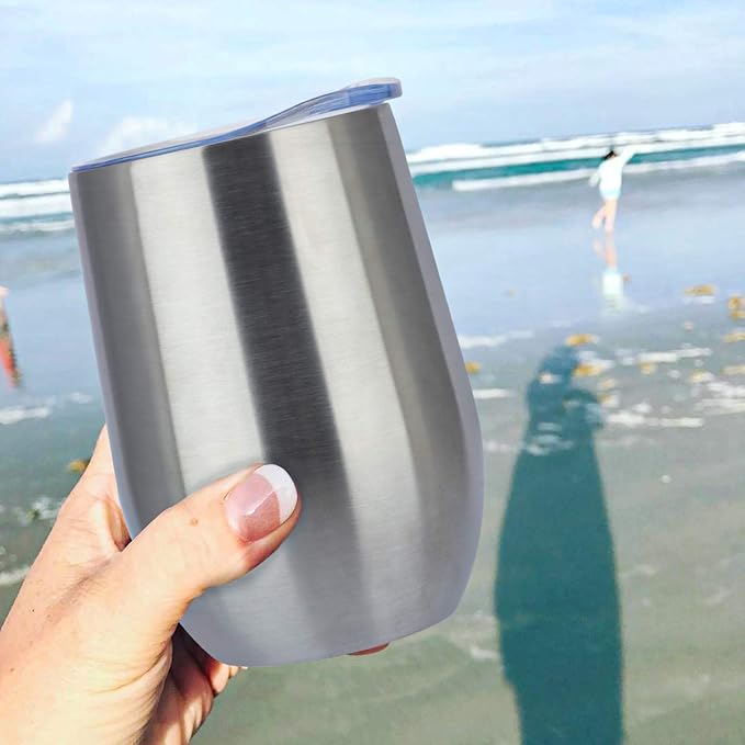 - [Advanced Insulation Technology:]Double wall vacuum insulated prefection in a stemless wine tumbler made from lifelong Stainless Steel! Set off on your refreshing picnic, hiking or camping adventures with your water, wine, or cocktail icy-cold for 9 hours or your coffee and tea scalding-hot for over 3 hours!