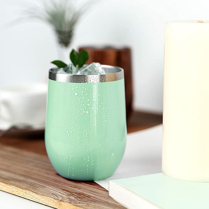 - [Advanced Insulation Technology:]Double wall vacuum insulated prefection in a stemless wine tumbler made from lifelong Stainless Steel! Set off on your refreshing picnic, hiking or camping adventures with your water, wine, or cocktail icy-cold for 9 hours or your coffee and tea scalding-hot for over 3 hours!