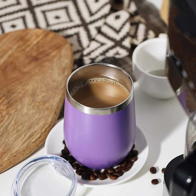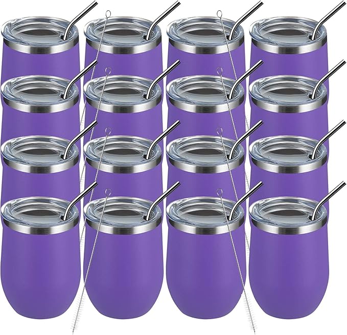 MEWAY 12oz Wine Tumbler 16 Pack Bulk Gifts for Women,Double Wall Vacuum Stainless Steel Travel Mug with Lid,Insulated Stemless Wine Cup Glass for Coffee,Cocktails,Drinks(Purple,Set of 16)