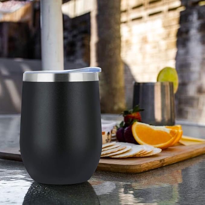 - [Advanced Insulation Technology:]Double wall vacuum insulated prefection in a stemless wine tumbler made from lifelong Stainless Steel! Set off on your refreshing picnic, hiking or camping adventures with your water, wine, or cocktail icy-cold for 9 hours or your coffee and tea scalding-hot for over 3 hours!