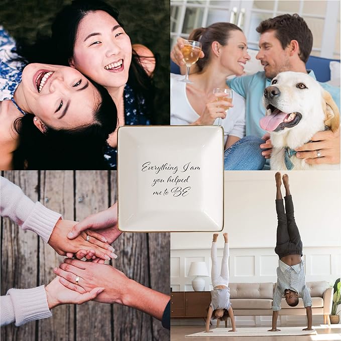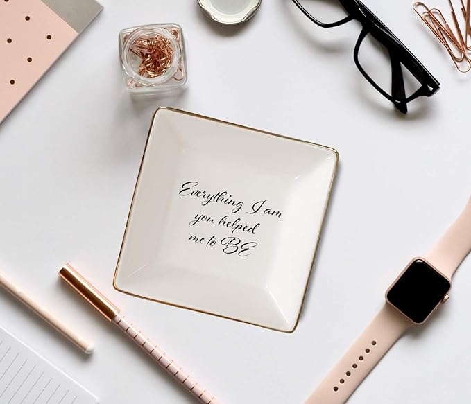 Simply Charmed Everything I Am You Helped Me to Be Ceramic Jewelry Dish or Ring Holder - Birthday Gift for Mom From Daughter, Teacher, Best Friend