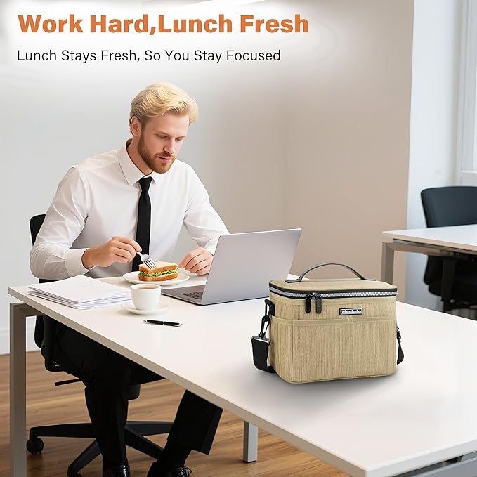 Tirrinia Insulated Lunch Bag for Women Men, Leakproof Lunch Box Containers for Adult, Work, School, Soft Lunchbox for Kids,Boys, Adult Cooler Bag for Picnic Hiking Beach,Khaki