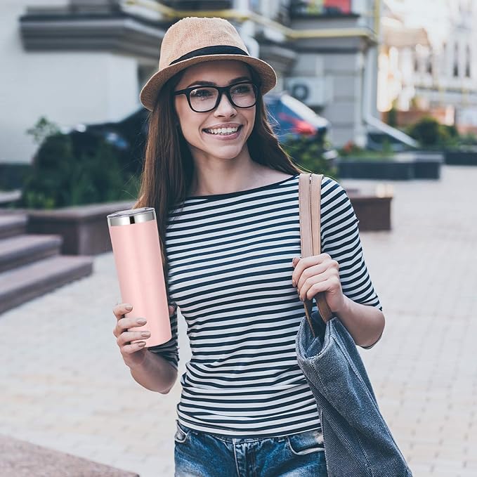 - Widely Use: The 20 oz skinny tumbler with sliding lid can be used as water cup or juice tumbler, suitable for party, picnic, self-driving travelling, boats, beach, pool, camping, hiking etc