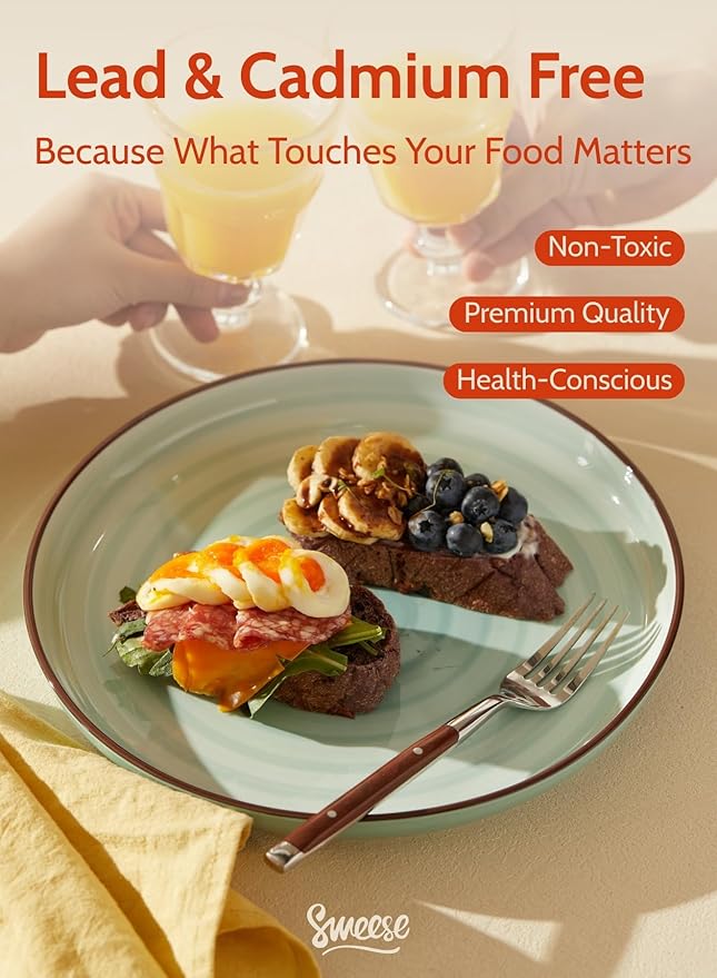 - Sturdy & Safe: Sweese plates are crafted from high-quality porcelain, proven to withstand the dishwasher, microwave, and oven. Our lead-free glazes ensure your safety, eliminating concerns about lead seeping into your system. Fired at high temperatures, this plate set won't absorb odors or harbor bacteria, ensuring a sturdy choice for your kitchen.