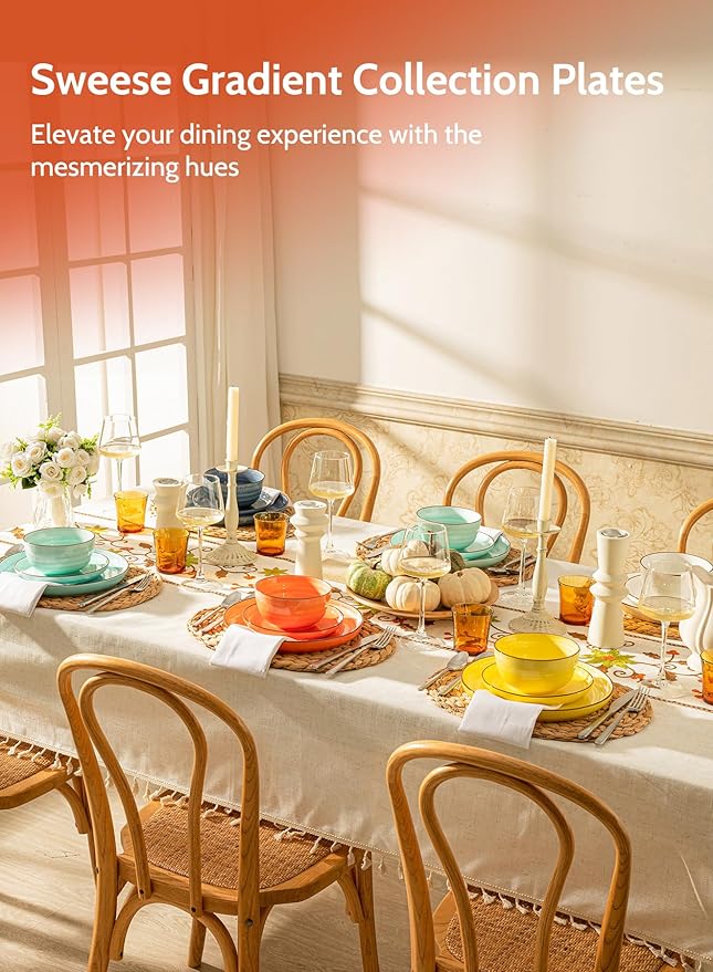 - Vibrant Table Style – Round porcelain design with gradient hues to bring a colorful, modern look to any dining setting