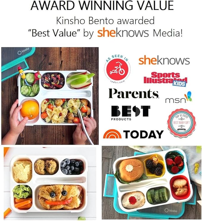 - WHAT YOU GET: *Authentic Kinsho bento box. *Insulated bag. *Deluxe fabric-covered ice bag. *Custom fit spoon & fork. *Kinsho Tips + Eats eBook with 60+ Bento tips + recipes from Kinsho’s founder (a mom & award-winning mindful cooking author). *Industry leading guarantee. *Customer support from our Boston-based team.