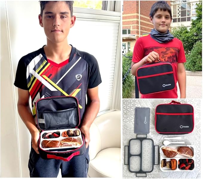 - KIDS AND ADULTS LOVE KINSHO for the individually sealed compartments that keeps food from touching. The modern grid design and clean white container bottom makes all food look tasty. Designed with a slim depth, the lid will be an air-tight fit to keep food fresh and not jostle around but is NOT recommended for liquid, soup, juice, etc.