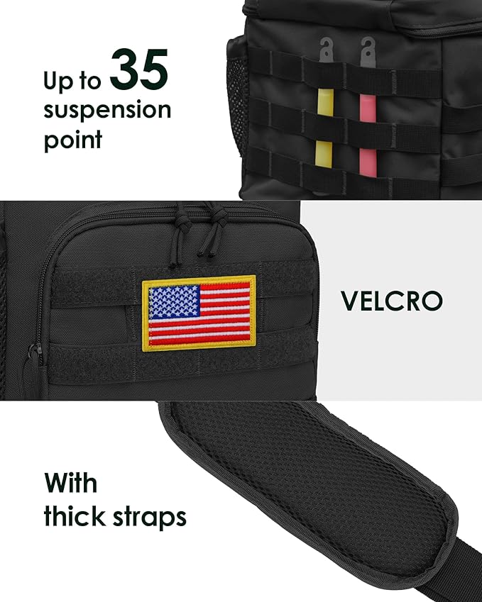 TACTICISM Tactical Lunch Box for Men, 12L MOLLE Lunch Bag Adult, Up to 8 Hours Insulated lunchbox, Large Durable Leakproof Cooler with Detachable Water Bottle Pouch, for Work Camping Fishing, Black