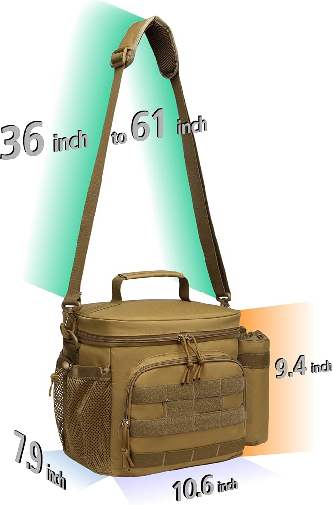 TACTICISM Lunch Box for Men - 12L/20L/25L Tactical Lunch Bag Adult - MOLLE Insulated Leakproof Lunch Pail with Detachable Water Bottle Pouch - Lunch Cooler for Work and Outdoors, Brown