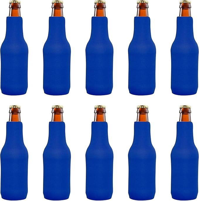 10 Neoprene Zippered Beer Bottle Coolies Pack - Sharkskin Rubber Bottom - Royal Blue