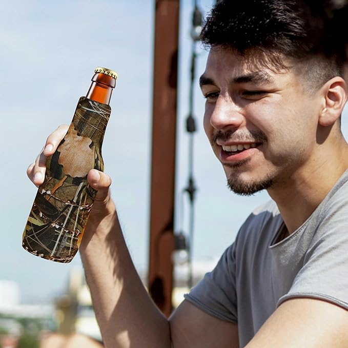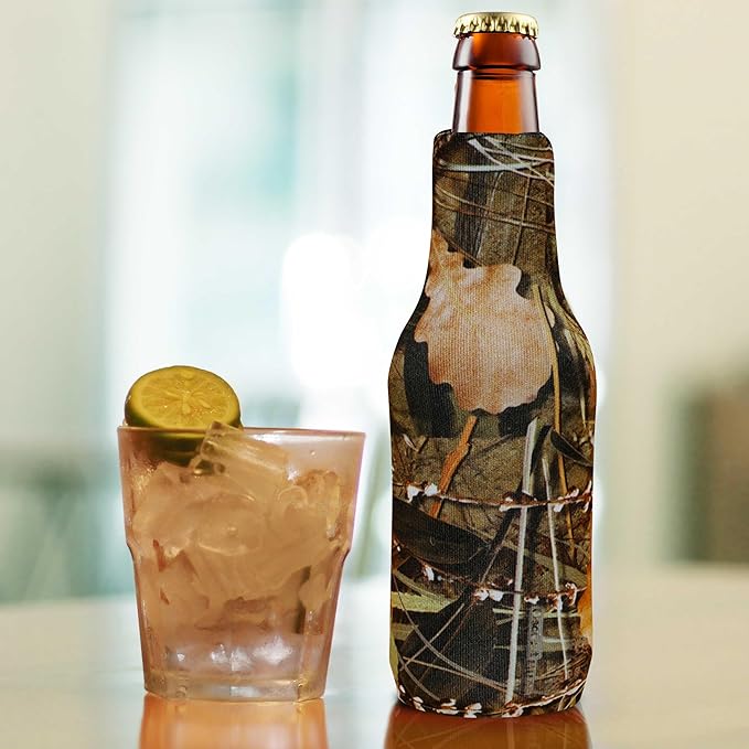 10 Neoprene Zippered Beer Bottle Coolies Pack - Sharkskin Rubber Bottom - Camo4