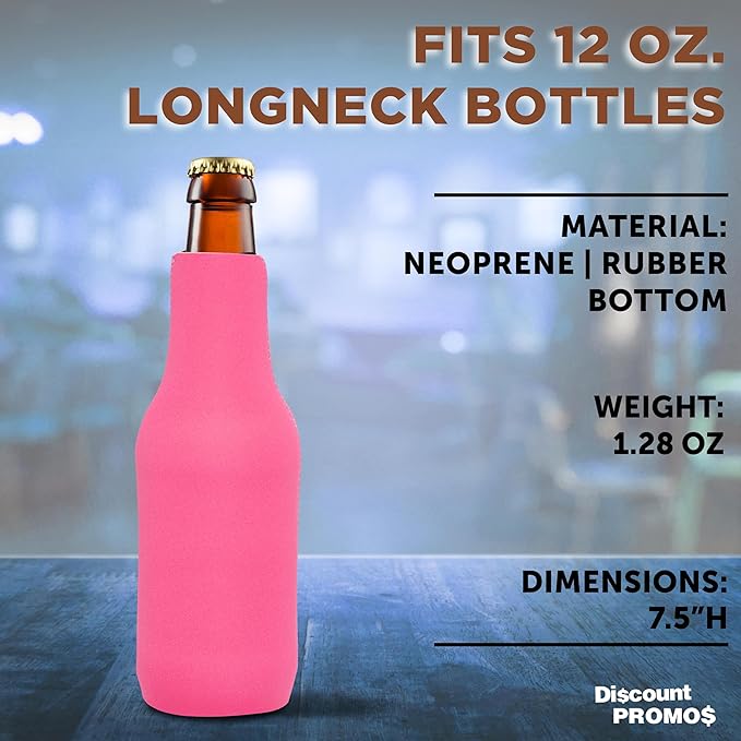 10 Neoprene Zippered Beer Bottle Coolies Pack - Sharkskin Rubber Bottom - Neon Pink