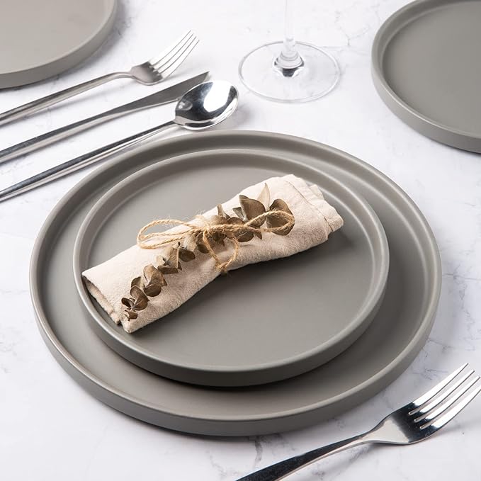 - EXTRA STRONG GLAZE HARD THAN METEL: Our glaze is extra strong to prevent scratches from your knives and forks. Please note dark marks may occur which are not scratches, but metal residue marks,because of the glaze surface harder than metal flatware.To remove metallic stains, you can use sponge and porcelain Power cleaner,Very easy to do that.The plates set is microwave,dishwasher and freezer safe.